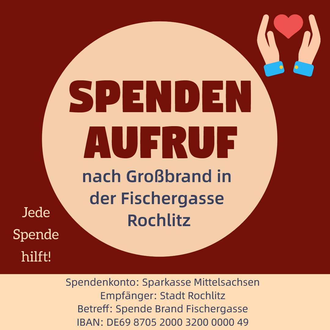 In der Nacht des 14. Januar hat in der Fischergasse in Rochlitz ein Großbrand ein Wohnhaus komplett unbewohnbar gemacht. Nach derzeitigen Angaben ist ein Mensch schwer verletzt wurden, für einen Bewohner kam leider jede Hilfe zu spät. Er verstarb während des Brandes im Haus. Dank des schnellen und beherzten Eingreifens der Feuerwehr, des Rettungsdienstes, der Polizei sowie von Ersthelfern aus der Nachbarschaft konnte ein Bewohner gerettet sowie ein drohendes Übergreifen des Feuers auf Nachbargebäude verhindert werden. Allen Einsatzkräften gilt unser herzlichster Dank! Den Hinterbliebenen wünschen wir in der Trauer viel Kraft und schnelle sowie beste Genesung der beim Brand verletzten Menschen. Die Stadtverwaltung steht den Betroffenen zur Seite und versucht, schnell und unbürokratisch zu helfen. Hiermit möchte ich alle Bürgerinnen und Bürger um Spenden für die Betroffenen bitten. Wir haben dazu folgendes Spendenkonto eingerichtet: