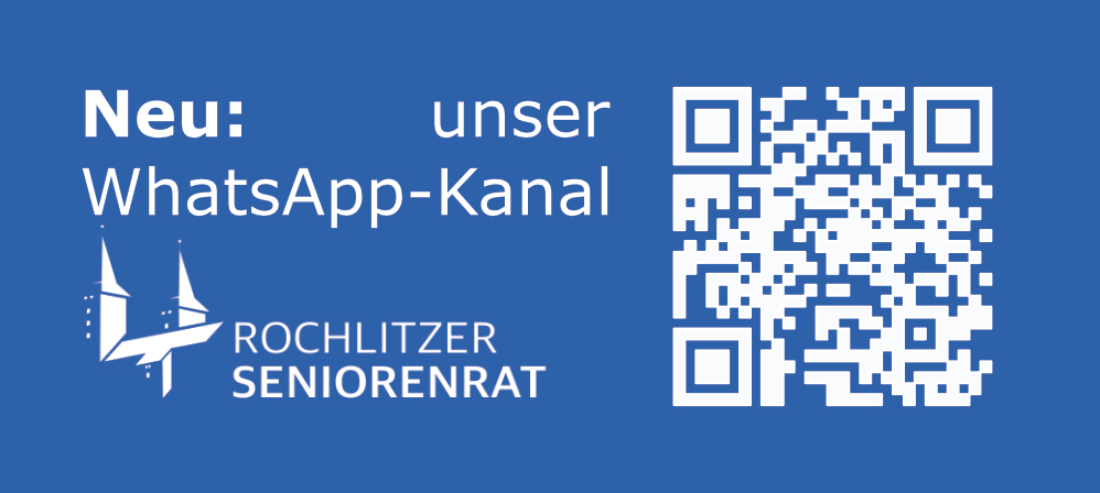 Der Seniorenrat Rochlitz informiert ab sofort auch über einen eigenen WhatsApp-Kanal. Hier erhalten Sie regelmäßig aktuelle Hinweise zu Veranstaltungen, Terminen und Neuigkeiten aus dem Generationentreff und der Seniorenarbeit.